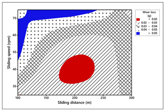 Contour plot for wear loss (Sliding speed vs. sliding distance).