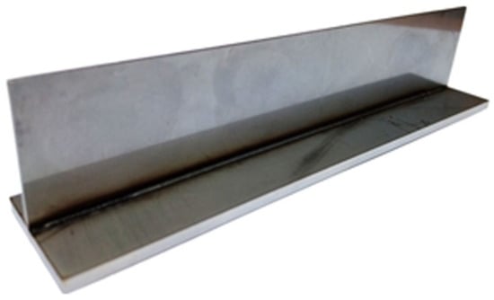Large structures are created on automated production lines in production plants, where various types of welded joints are used. T-joints are a one of the most commonly used type of welded joints in large-size welded constructions. T-joints are classically performed with arc methods like fillet welding, in which it is necessary to use an additional material during the welding process. An important factor in such welding processes is the high thermal load of the element, which has an impact on the shape of the welding pool, strength properties of the joint and its weight. Low welding speeds with arc methods additionally increase production costs. The use of modern welding equipment in the production process like a laser beam has significantly increased the production capacity of T-joints [,,,,]. Laser methods allow T-joints to be made using various welding techniques, such as classic joints with the use of double-side and single-side fillet welds, with or without additional material as well as T-joints with the use of butt-welds. The I-core T-joint is an innovative solution, in which the material is melted by laser through the flange of T-bar creating a fused “nail”, connecting elements [,,]. Performed research on T-joints (numerical as well as experimental) concerns the analysis of physical phenomena in welding processes and the analysis of T-joints in complex large-size industrial constructions.