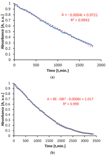 2.8. Photocatalytic Absorption Tests for 2% Copper-Doped TiO2 Pigments