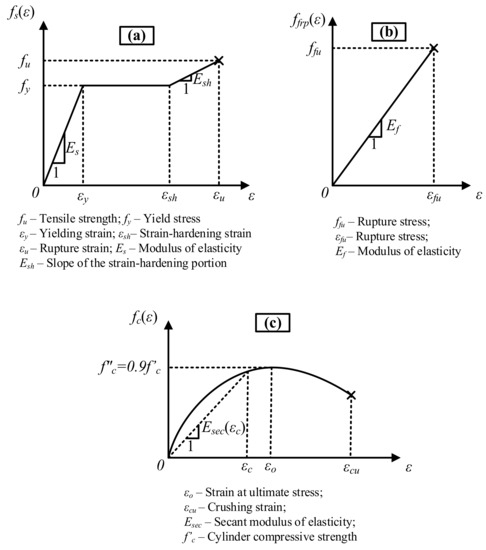 The loss of the reinforcing bar (rebar) cross-section and the reduction in the bond strength of rebars in concrete due to the formation of debonding cracks are among the most deleterious effects of reinforcement corrosion on reinforced concrete (RC) members and structures. Reinforcement corrosion is a more pronounced problem in structures subjected to aggressive environmental conditions, including but not limited to the presence of chlorides, sulphates, and other active chemicals. Furthermore, RC members are always liable to cracking due to chemical and physical events, such as alkali–silica reactions and the carbonation and restrained shrinkage of concrete. These cracks form paths for the aggressive agents and air to reach the steel rebars, which can exacerbate the corrosion problem during the service lives of structures. The reinforcement corrosion leads to a reduction in the load capacities of members as well as serviceability problems, i.e., increased deformations and crack widths. Extensive research has been conducted on protection methods for reinforcement corrosion, including surface coating of rebars (epoxy coating, galvanizing, zinc coating, and copper cladding), cathodic protection, and the use of organic and inorganic admixtures in concrete. Recently, a new design concept started being implemented, which is the use of non-corroding polymeric (FRP) materials as reinforcement rather than adopting precautions against steel corrosion. Although there has been a proliferation of studies on the use of composite materials in strengthening concrete beams [1,2,3], the direct use of polymers as a concrete reinforcement is a fairly new concept. Despite their major advantages, various drawbacks arise when concrete members are reinforced with only FRP bars. Ductility problems associated with the brittle material properties and serviceability problems originating from the low elastic modulus values of FRP materials are among the leading shortcomings of the use of FRP as the sole reinforcement material in concrete flexural members (beams and slabs). Furthermore, FRP bars cannot be utilized in concrete columns since they are liable to buckling even under low compressive forces as a result of their low elastic modulus values. The ductility and serviceability concerns receive particular attention in the design of FRP RC members [4].