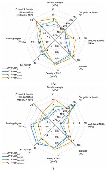 | GTR/NBRS/Si30 | 30 | 8.5 ± 1.5 | 131 ± 21 | 6.8 ± 0.9 | 81 ± 2 | 1.25 ± 0.01 | 84 ± 1 | 1.73 ± 0.05 | 4.6 ± 0.2 | ||