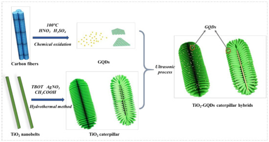 2.2. Fabrication of TiO2-GQDs Caterpillar Hybrids
