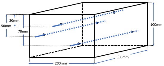 To ensure that the mortar cover was not damaged by the expansive corrosion products, the diameter of steel needed to be relatively small, at 5.4 mm. The steel was a drawn wire with a 0.88% carbon content and an approximate UTS of 1800 MPa, and originally the straight central king wire from a seven-wire strand. The bars were formed by cropping king wires to be longer than the container used as the mould and passed through small holes in the container wall to hold them at the required cover depth. Each concrete sample has three bars at different cover depths, as shown in Figure 1.