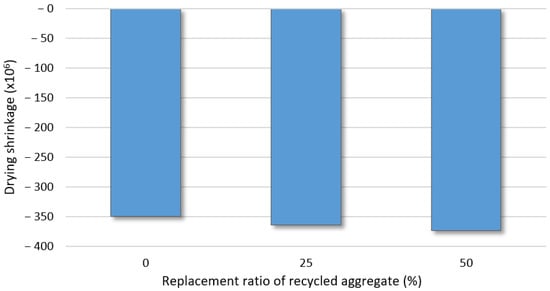Drying shrinkage of concrete specimens according to replacement ratio of recycled aggregate.