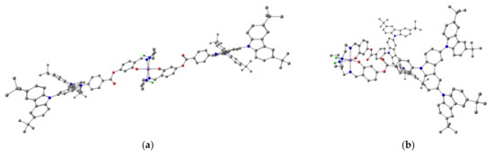 Finally, the results of our calculations suggest that carbazole moieties—or rather, πcarb–π* intraligand (ILCT) and πcarb–dFe ligand-to-metal (LMCT) charge transfers—are responsible for a double-band emission observed for our compounds.