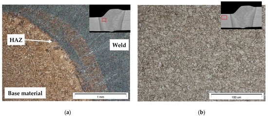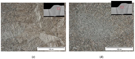 In article [29], Guo et al. stated that the crucial aspects related to the welding of fine-grained, high-strength steel S960 MPa were the temperature of the process and the welding rate. Those two factors significantly affected the microstructure in the zones of the welded joint (HAZ, weld).