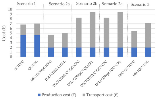 | Scenarios | Production Cost (€) | Transport Cost (€) | Total Cost (€) | |