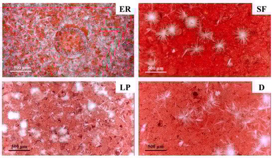 3.2. Phase Assemblage of Efflorescence Substances