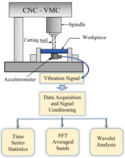 - Chen, C.C.; Liu, N.M.; Chiang, K.T.; Chen, H.L. Experimental investigation of tool vibration and surface roughness in the precision end-milling process using the singular spectrum analysis. Int. J. Adv. Manuf. Technol. 2012, 63, 797–815. [Google Scholar] [CrossRef]