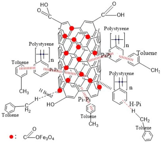 - CH–π interactions could occur between the hydrogen atom from toluene and the aromatic rings of the polystyrene or MWCNTs.