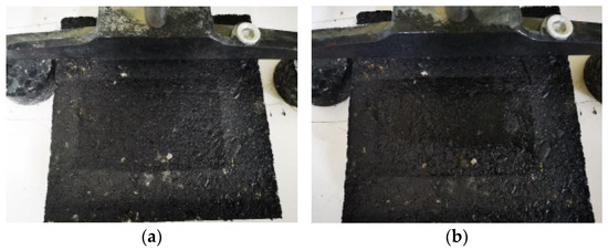 In order to study the impact of sand accumulation on the anti-skid performance of the pavement, a rut plate specimen was made indoors, and the sand on the road area was simulated through different amounts of sand, and the BPN value under different conditions was tested, as shown in Figure 4. Moreover, the different amounts of sand accumulation were 0 g, 10 g, 20 g, 30 g, 40 g, 50 g, 60 g, 70 g, and 80 g, respectively. Before the test, clean the surface of the test piece with a brush and then spread the sand weighed in advance evenly over the whole test piece. After the test, clean the sand on the surface of the test piece with a brush and repeat this method many times until the test was completed.