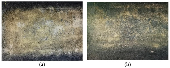 MPD reflects the average section depth of the specimen surface. With the increasing amount of aeolian sand, the texture depth of the specimen surface is gradually reduced, and the surface texture changes passively. At this time, MPD decreases with the trend, and the BPN value greatly correlates with the surface texture of the specimen, which also decreases. The MPD of AC-13 in Figure 13a and AC-16 in Figure 13b decreased by 23% and 7.2%, respectively, when the initial sand accumulation increased from 0 g to 5 g. Then, with the gradual increase of the amount of aeolian sand on the specimen surface, the MPD decreased. During the whole process, the MPD of the two specimens decreased by 52% and 56.4%, respectively.