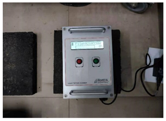 The Ames engineering texture scanner (LTS 9400) (Ames Engineering Co., Ames, IA, USA) was used to detect the texture indicators of the specimens under different amounts of sand. As shown in Figure 8, select 30 scan lines among them, and select the three texture indicators of MPD, Ra, and Rq. Among them, MPD is the mean profile depth of the specimen surface, Ra is the average deviation of the contour arithmetic, and Rq is the root mean square deviation of the profile.