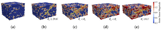Iwashita and Oda [12] found that, by modifying the conventional DEM and taking into account the rolling resistance between the particles, they could provide a more realistic model that could explain the existence of large voids and high gradients of particle rotation inside the shear bands. It is worth noting that the rolling resistance is defined as a coupled interaction between the grains that resists the rotation of particles [52]. They showed that the formation of a shear band in a granular material is strongly affected by the rolling resistance.