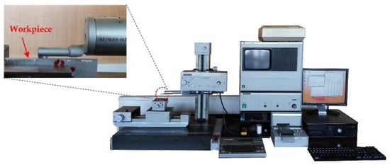 Kerf width measurements were made on three equidistant positions along the length of the cut. A Universal Toolmaker’s (Guiyang Xintian Oetech Co., Ltd., Guizhou, China) Microscope was used as a measurement device, as shown in Figure 3a,b, which presents an example of top and bottom kerf width that were measured on the microscope. Specifications of the measurement device are presented in Table 4. Bevel angle was calculated using Equation (1), where s (mm) is plate thickness, and Wu (mm) and Wi (mm) are top and bottom kerf widths, respectively. Surface roughness Ra and Rz measurements were conducted in the middle of the cut surface height at five equidistant positions along the length of the cut surface. Pre-experiments showed that difference in surface roughness by cut surface height is not visible. Taylor Hobson Talysurf 6 was used as measurement device for surface roughness, as shown in Figure 4. Surface roughness was measured according to standards EN ISO 4287/4288 with the sampling length 8 mm, evaluation length 40 mm, 10 µm radius stylus tip, and Gaussian cut-off filter 8. A stylus speed of 0.5 mm/s was used in conjunction with a 0.8 mN static stylus force and the stylus cone angle used was 90°. In the measurement process, attention was paid on measurement errors that can be random and systematic. In order to avoid random errors measurements of Wu, Ra and Rz were repeated several times until the values converged and average values of each response were considered for the further analysis. Systematic errors were avoided by using correctly calibrated measurement devices in controlled environment under room temperature and pressure. Material removal rate response was calculated according to Equation (2).