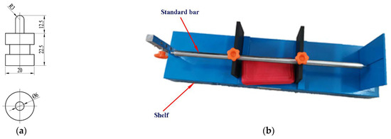The shrinkage performance of concrete was tested according to GB/T 50082-2009 [38]. The shrinkage of concrete was measured using the 100 × 100 × 515 mm prisms. First, the specimen was put into standard curing room for 3 days; then, the specimen was immediately moved into a test chamber where the room temperature was maintained at (20 ± 2) °C and the relative humidity was maintained at (60 ± 5) %. HSP-540 concrete shrinkage dilatometer (Blue standard building instrument Factory, Cangzhou, Heibei, China) was used to test the length of RATIC at different times, and the total shrinkage strain value of RATIC was obtained. The embedded probe was used in this test, and the size of the probe and HSP-540 concrete shrinkage dilatometer is shown in Figure 6. The initial calibration distance of the specimen was 470 mm, and the total shrinkage rate of concrete was measured over a period of 150 days.