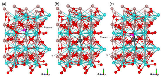 - Carrasco, J.; Illas, F.; Lopez, N.; Kotomin, E.A.; Zhukovskii, Y.F.; Piskunov, S.; Maier, J.; Hermansson, K. First principles simulations of F centers in cubic SrTiO3. Phys. Status Solidi C 2005, 2, 153–158. [Google Scholar] [CrossRef]