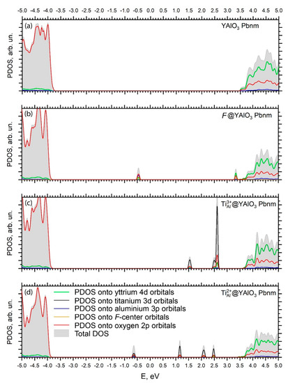 - Brik, M.G.; Ma, C.G.; Piasecki, M.; Suchocki, A. Locating impurity and defect levels in the host band gap by first-principles calculations: Pure and Ce3+-doped YAlO3. Opt. Mater. 2021, 113, 110843. [Google Scholar] [CrossRef]