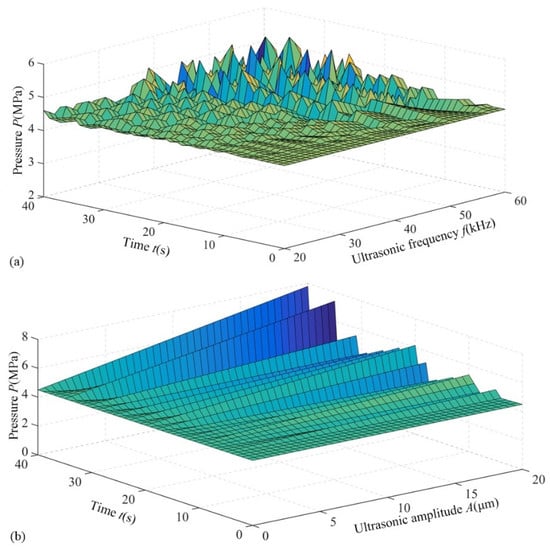 Variation of ultrasonic sound pressure. (a) Ultrasonic frequency; (b) Ultrasonic amplitude.