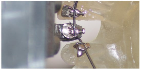 Errors relative to the obtained values could arise from various aspects of the experimental procedure, such as model scanning and duplication, positioning of the brackets, the wires and the sensor and sensor accuracy and statistical error of repetition. Model scanning proved to be a reliable method for digitizing the classic stone casts [49,50]. Stone cast duplication is very common in dentistry, and the precision of silicone has been analyzed before [51,52,53]. Moreover, measurements on stone models with the use of calipers proved to be comparable with the use of three dimensional software [54]. The positioning of the brackets, the bonding procedure using transfer keys, the wire adjustments and ligation were performed by the same examiner following a standardized protocol. It is difficult to quantify this error source, which has an effect on the positioning accuracy of brackets and wires in the measurement model. However, as all the steps have been performed by one examiner using transfer keys and identical material was used, we assume that the effect on the overall error might be neglected compared to the other error sources.