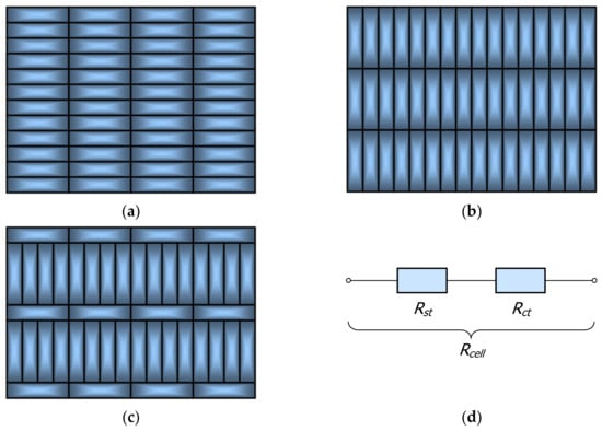 The scheme of the resistances connection used to calculate the total thermal resistance Rcell is presented in Figure 2d.
