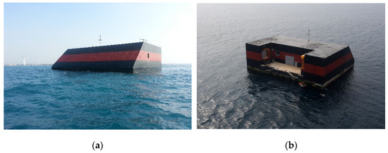 Oscillating water column wave energy structures (OWC): (a) Front (air chamber); (b) Rear (docking facility).
