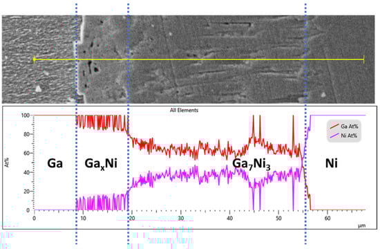EPMA line scan of Ga/Ni specimens reacted at 300 °C for 180 min.