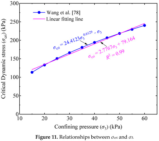 - Wang, K.Y.; Zhuang, Y.; Geng, X.Y. Experimental research on critical dynamic Stress of coarse-grained soil in railway subgrade. Rock. Soil Mech. 2020, 41, 1865–1873. [Google Scholar]