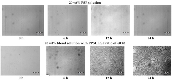 3.1. Properties of PPSU/PSF Blend Solutions