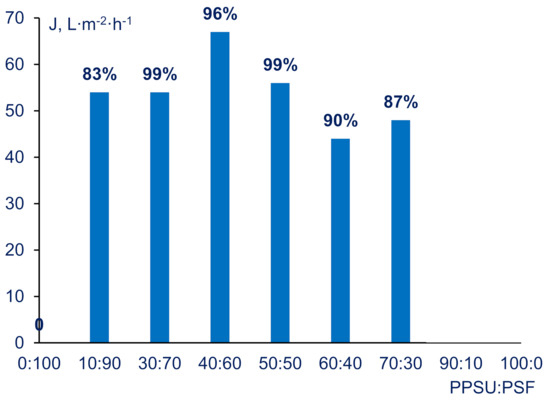 3.2. Effect of PPSU-PSF Blend Ratio on the Structure and Performance of Ultrafiltration Membranes