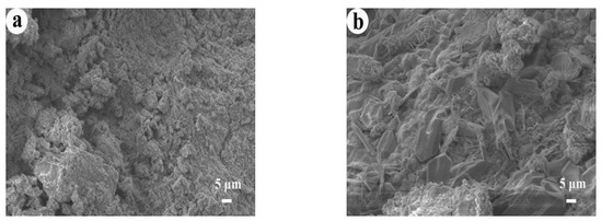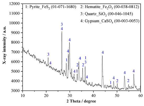 Resource utilization of tailings is one of the key directions for green development of mines [1,2,3]. In recent years, domestic and foreign scholars have done a lot of work on the resource utilization of iron tailings and copper tailings, which promotes the utilization technology development and application of relevant tailings [4,5,6,7]. However, metal mines are accompanied by sulfide. The sulfide in the form of pyrite is prone to oxidation to produce sulfate, which has a significant impact on cement hydration. In general, in cement-based systems, excessive sulfate can react with hydration products to form ettringite, reducing calcium hydroxide (CH), and causing problems, such as the structure deterioration of calcium silicate hydrate (C-S-H) [8,9,10,11]. Therefore, how to avoid or reduce the impact of sulfate on cement hydration has become a key problem for the resource utilization of STs. For this reason, domestic and foreign scholars have proposed a utilization method of STs to prepare filling materials for mine. For example, Liu et al. [12] pointed out that tailings backfill materials were prepared by solid waste in mines to fill mined-out voids, which reduced the volume of the tailings dam, importantly protecting the environment and building environmentally friendly mines. Wang et al. [13] used agricultural waste rice straw ash (RSA) to partially replace cement with a view to reducing the filling cost and improving the strength performance of cemented tailings backfill. Jiang et al. [14] found that the tailings backfill with sulfur content less than 18% had strength greater than 1.2 MPa after 28 days and can be directly used as filling aggregate. The general idea of the method is to use fly ash, slag, calcium carbide slag, etc. to form composite excitation materials to cement STs to produce filling materials for the mine, and to realize in situ resource utilization of STs [15,16]. However, it has been found that this method has a relatively limited consumption of STs. So, it is particularly important to develop effective large-scale utilization technologies that can consume large amounts of STs to solve the problems of STs.