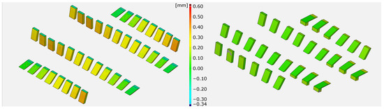 Figure 8 illustrates and compares the SLM and hybrid built parts by a false colour representation provided by stripe line projection, indicating the dimensional deviation of the printed and constructed geometries.