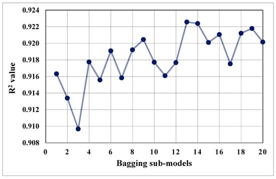 Coefficient of determination (R2) values of bagging sub-models.