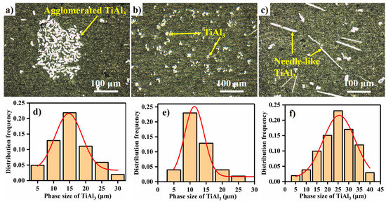 Figure 2a shows that the Al-5Ti-0.25C master alloy is mainly composed of TiAl