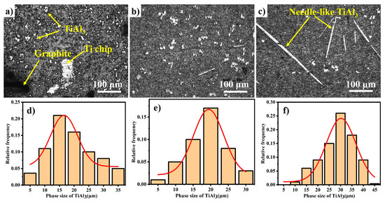 Figure 5b reveals that FW-1 possesses an excellent microstructure without undissolved graphite and Ti chips when the reaction time is 60 min. However, when the reaction time is 90 min, the morphology of TiAl