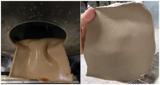 Figure 8, leather presents a correct cross-section, and it is correctly tanned. The shrinkage temperature obtained is 79 °C. The obtained results show that the by-products obtained from olive oil extraction can be an alternative to partially replace the usual tannin extracts. However, the wet olive pomace has to be optimized in order to increase the number of tannins obtained and improve their application on leather.