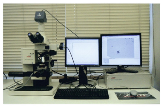 A Micro Hardness Tester device by CSM Instruments, which includes a conical diamond Vickers indenter, an XY table and an image analysis software was used for the microhardness tests (Figure 3). Each measurement was followed by computer-assisted recording of experimental parameters and processing of the obtained results. The study included 15 to 20 measurements for every examined sample. The minimum, maximum and average values of the examined parameters were determined on this basis. The load used in coal analysis was 0.5 N.