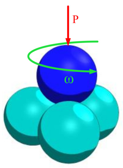 The SGW-10A four-ball machine [29] (Figure 1 is the schematic diagram) was used to evaluate the extreme pressure, friction, and wear properties of the modified oil according to the test conditions in Table 1.