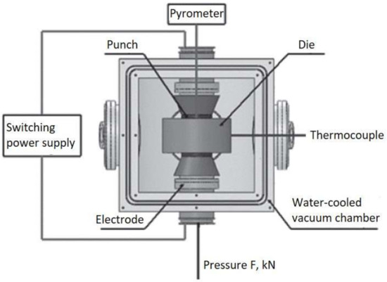 - Kessel, H.U.; Hennicke, J.; Schmidt, J.; Weißgärber, T.; Kieback, B.F.; Herrmann, M.; Räthel, J. “FAST” field assisted sintering technology—A new process for the production of metallic and ceramic sintering materials. In Pulvermetallurgie in Wissenschaft und Praxis 22—Pulvermetallurgie—Kompetenz und Perspektive; Heimdall Verlag: Witten, Germay, 2008. [Google Scholar]