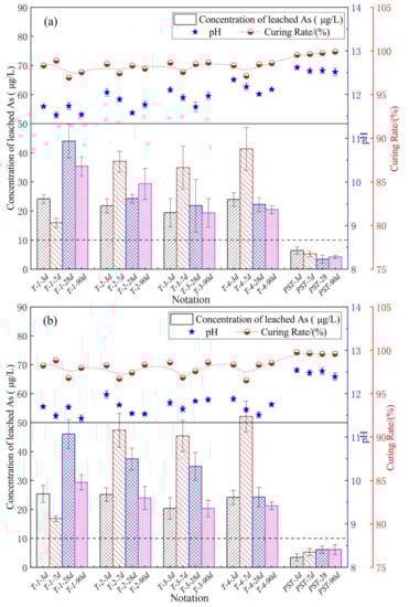 - The extraction test results showed that the As curing rate for SST and PST samples were in the range of 96.80–98.89% and 99.52–99.2%, respectively.