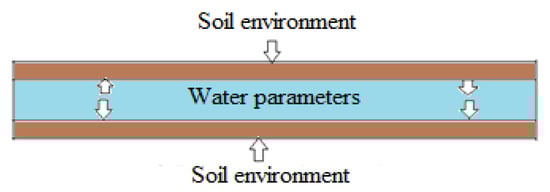 Corrosion can be analyzed using imaging instruments to characterize the surface and crystals of corrosion products by using scanning electron spectroscopy (SEM) to assess corrosion morphologies and X-ray diffraction spectroscopy (XRD) for studying corrosion products [21,22,23]. These instruments have the potential to provide internal and external detailed information on corrosion products by identifying the composition, structure, and morphology of corrosion. Image processing is an effective corrosion characterization technique from 2D and reconstructed 3D images to evaluate the geometric features of the pit and profile of surface irregularities [24]. The corrosion behaviors of soil and water environments are responsible for the lifetime of iron pipes due to the direct contact with pipe surfaces, as shown in Figure 1.