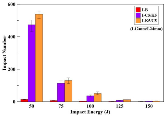 - The I-K5/C5 specimen has the best impact resistance in the impact test and it resists 512~558 impact numbers under 50 J.
