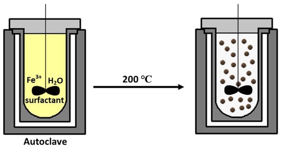 Schematic synthesis of magnetite nanoparticles by the hydrothermal method.