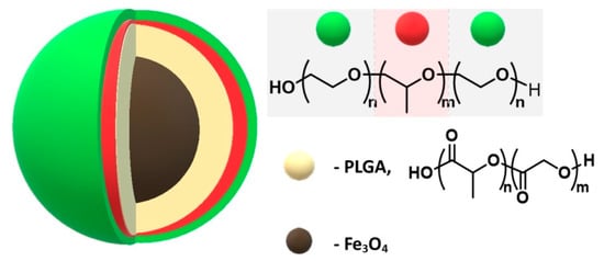 PLGA-coated magnetite nanoparticles have many advantages in drug delivery, especially in drugs protection against degradation. Moreover, they can also improve the pharmacokinetic and pharmacodynamic profiles of transported drugs. Another important advantage of PLGA over other polymers is that this macromolecule is approved by the FDA (U.S. Food and Drug Administration) and EMA (European Medicines Agency) in various drug delivery systems, which means that PLGA-coated nanoparticles can be used in clinical trials in a shorter period of time [139,140]. One of the most interesting applications of MNPs in biomedicine is their design to have additional fluorescent or luminescent properties. Such structures can be obtained by chemical or physical modification of the polymer shell surrounding the magnetite core [141,142]. This multimodal approach ensures the specific recognition and attachment of MNPs to the target cell, drug delivery, and the possibility of in vitro and in vivo bioimaging using optical methods, tomography, or magnetic resonance.
