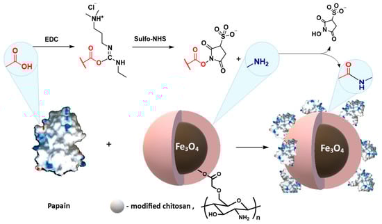 - Liang, Y.Y.; Zhang, L.M. Bioconjugation of papain on superparamagnetic nanoparticles decorated with carboxymethylated chitosan. Biomacromolecules 2007, 8, 1480–1486. [Google Scholar] [CrossRef]