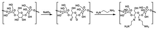 Linear polyethyleneimines contain only secondary amines as opposed to branched PEI, which contains primary, secondary, and tertiary amine groups. There are two carbon atoms in each PEI molecule with one protonated nitrogen atom. Due to the different pKa values of the primary, secondary, and tertiary amine groups, PEI can scavenge protons under different pH conditions, which is known as the “proton sponge” mechanism. PEI was developed to condense DNA through the electrostatic interaction between the positive and negative charges of the DNA phosphate group [146,147]. A quaternary ammonium derivative of branched polyethyleneimine (bPEI-met) has also been synthesized, and it was found that it exhibits antibacterial activity by disrupting bacterial cell membranes [148]. Due to its unique properties, PEI appears to be one of the most suitable molecules for the surface modification of MNPs for biomedical applications.
