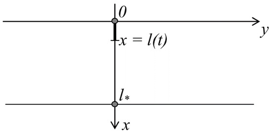 Let us denote the stationary approximation of the solution of Equation (22) on reaching by the crack tip of the interface l = l* through . The condition (24) means that the probability of the crack tip reaching the state of l* from the state of l0 is, in practice, a persistent event.