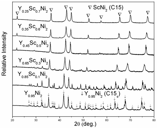 XRD patterns of as-annealed Y-Sc-Ni compounds.