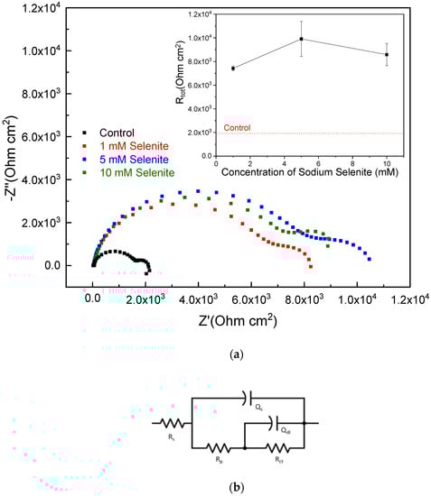 The following are available online at https://www.mdpi.com/1996-1944/14/2/286/s1, Figure S1: Bode plot for control, Figure S2: Bode Plot for 1 mM Selenite, Figure S3: Bode Plot for 5 mM Selenite, Figure S4: Bode Plot for 10 mM Selenite.