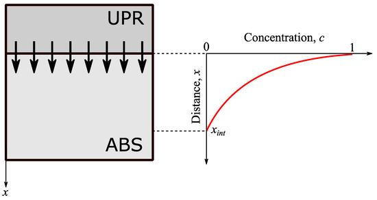 The 1D interdiffusion of the UPR into ABS as schematically shown in Figure 3 was modelled using the Fick’s second law [43] as: